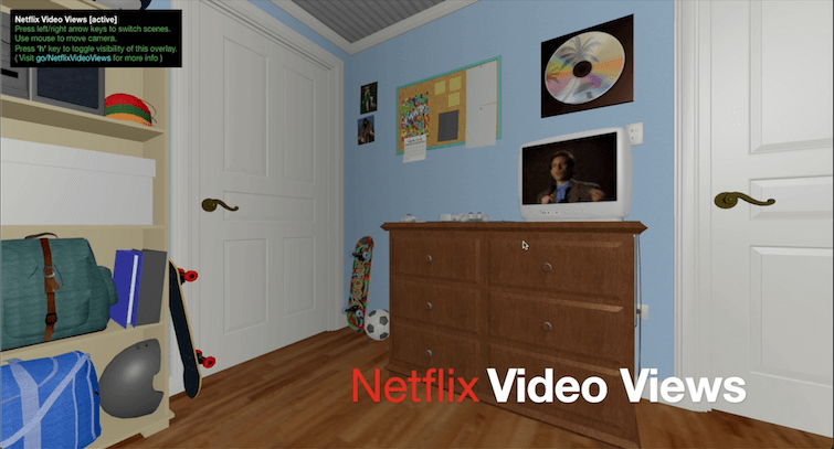 Taking this idea further for Hack Day, I created Video Views which is a React Three Fiber-based Chrome extension that transports the Netflix video player into a 3D viewing diorama. Check out the video below to see the full demo!