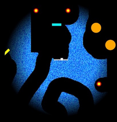 The premise of the game is simple. Basically it’s a retro-style 2D platformer where you must guide your rocket ship (using WASD or arrow keys) through the cavern and negotiate the various obstacles until you reach the end.
